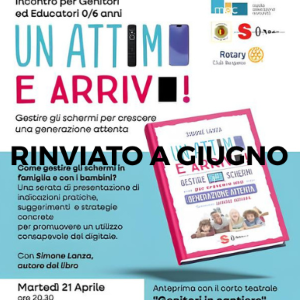 Per problemi organizzativi del formatore è stato necessario rinviare l'incontro UN ATTIMO E ARRIVO! al 23 giugno sempre in orario serale. Nei prossimi giorni verrà promossa la nuova data con la sede definitiva. Ci scusiamo per l'inconveniente.