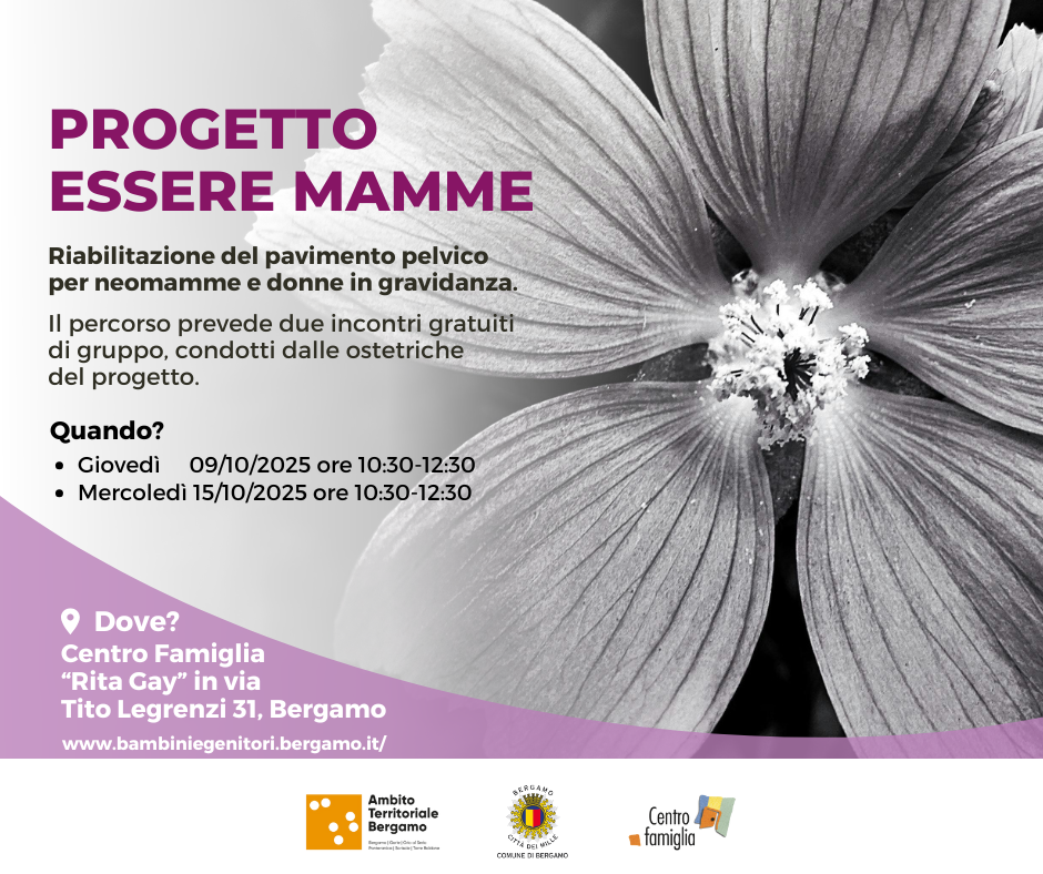 Giovedì 9 e Mercoledì 15 ottobre dalle 10.30 alle 12.30 presso il Centro Famiglia "Rita Gay" in via Legrenzi 31 a Bergamo