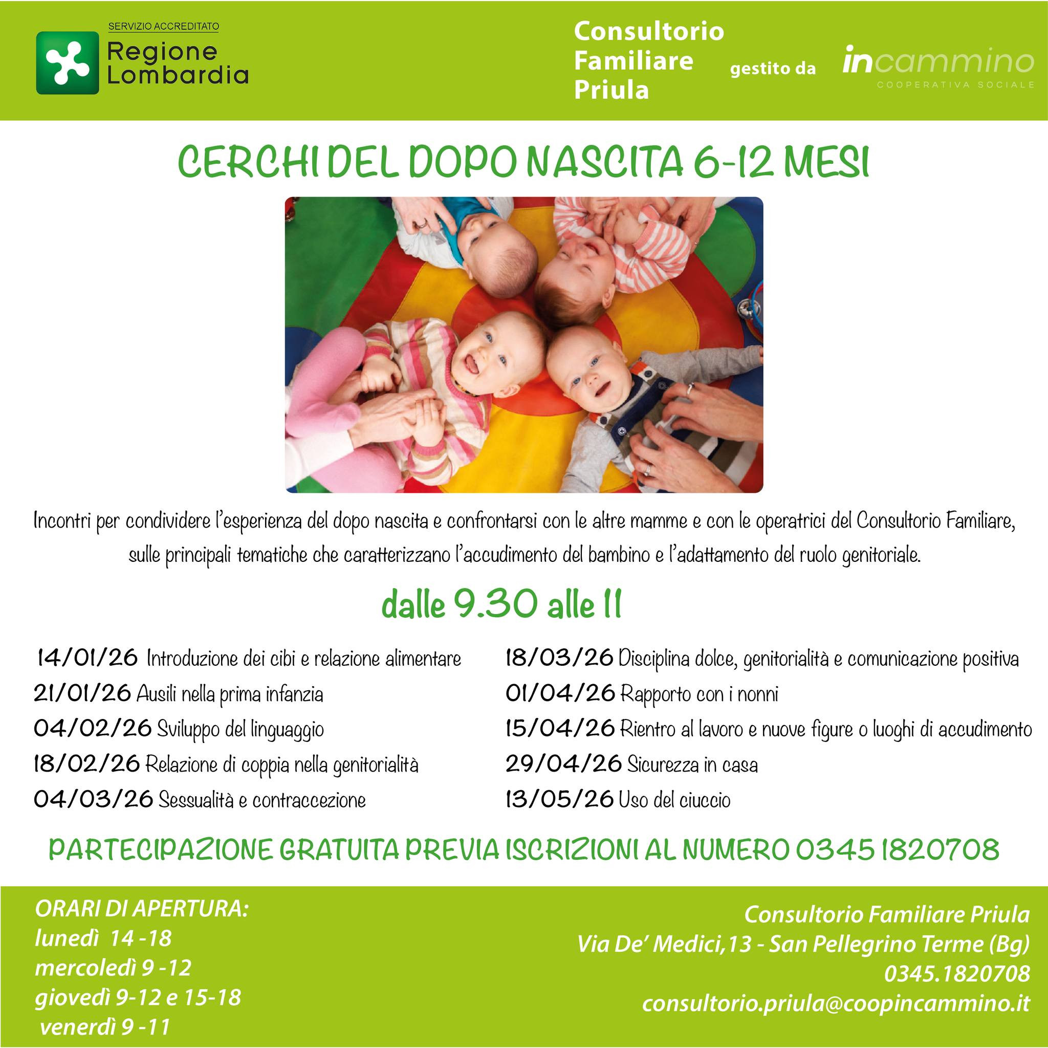 CERCHI DEL DOPO NASCITA famiglie con bambini da 6 a 12 mesi febbraio 2026 | San Pellegrino Terme
