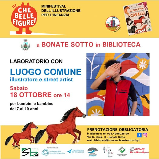 LABORATORIO con LUOGO COMUNE illustratore e street artist. partecipazione gratuita con obbligo d'iscrizione in Biblioteca tel: 0354996028/29 ; mail: biblioteca@comune.bonatesotto.bg.it