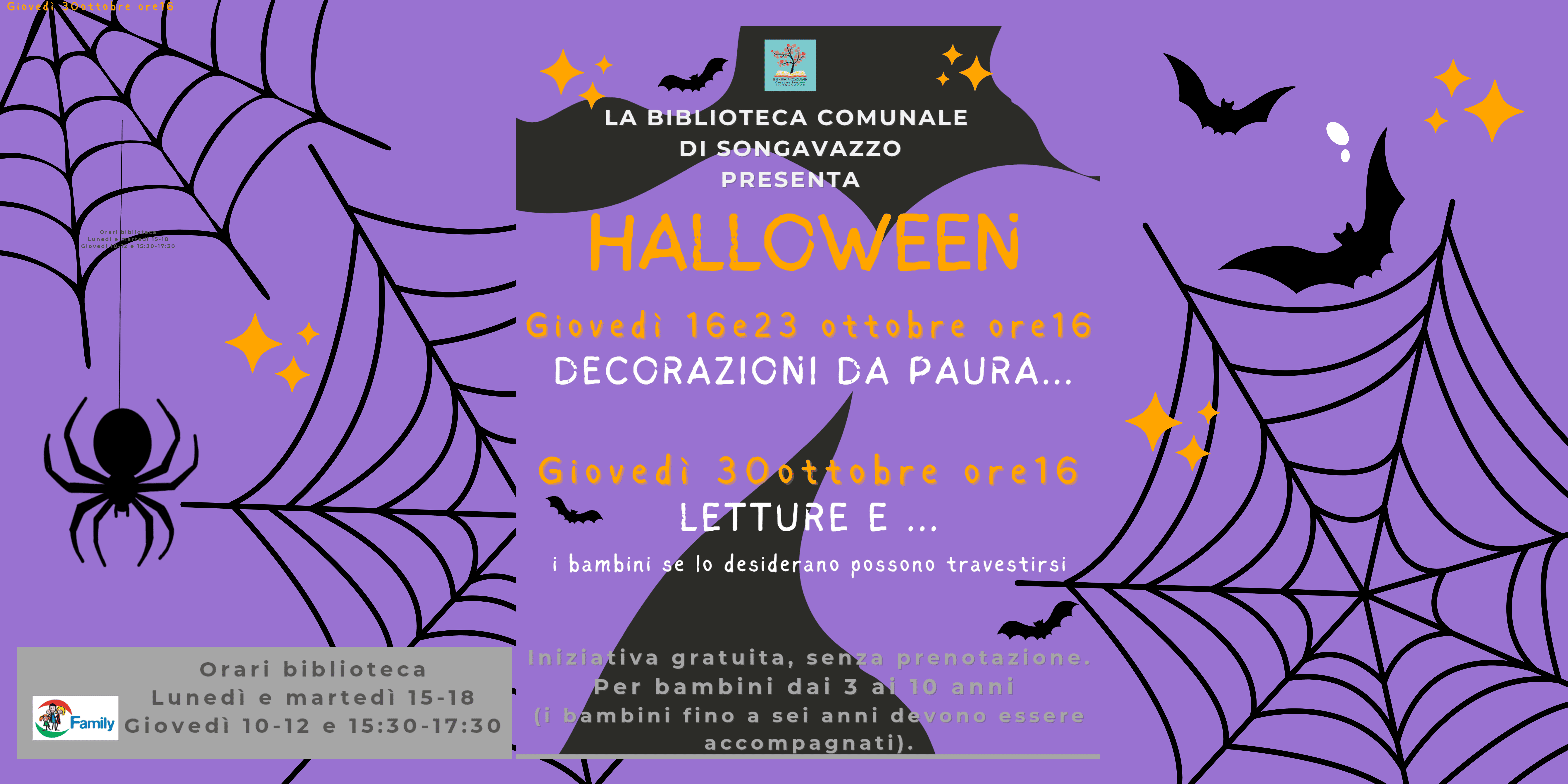 Decorazione da paura -Iniziativa gratuita senza prenotazione per bambini dai tre ai dieci anni, fino a 6 anni, i bambini devono essere accompagnati.