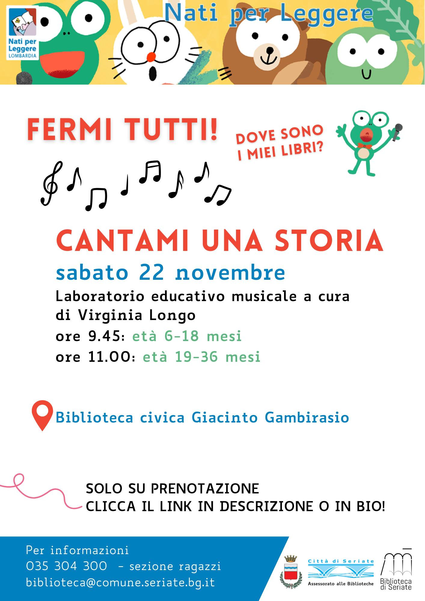 𝗖𝗔𝗡𝗧𝗔𝗠𝗜 𝗨𝗡𝗔 𝗦𝗧𝗢𝗥𝗜𝗔 TURNO 1 ORE 9:45: da 6 a 18 mesi 👶- TURNO 2 ORE 11:00: da 19 a 36 mesi 🧑🍼sempre accompagnati da un adulto - Leggere, cantare, suonare, giocare: storie e musiche per diventare grandi🎸 Laboratorio educativo musicale con Virginia Longo - ISCRIZIONE OBBLIGATORIA