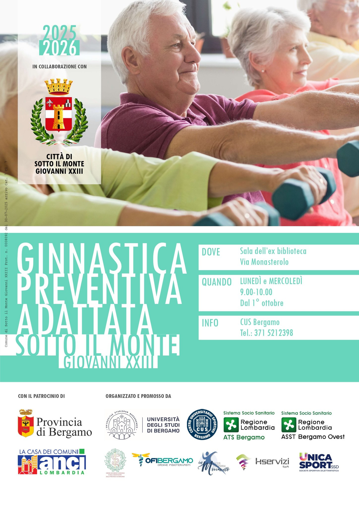 Attività dedicata a persone over 65. Per info contattare CUS Bergamo al 3715212398