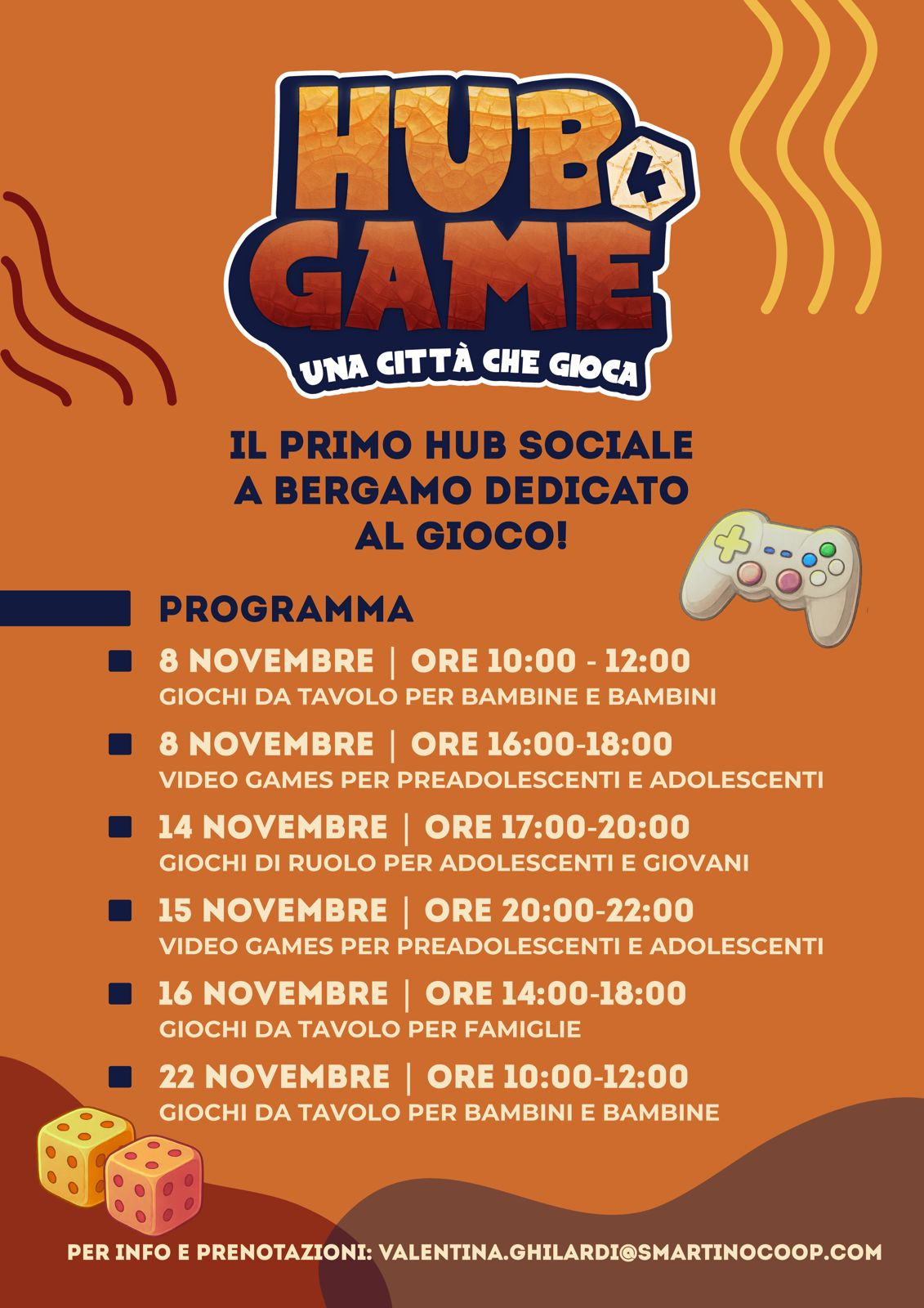 HUB 4 GAME una vera e propria fucina del gioco, con giochi da tavolo, giochi di ruolo, videogiochi e tante altre esperienze guidate dai nostri Game Masters. evento gratuito, per info e iscrizioni scrivere a valentina.ghilardi@smartinocoop.com
