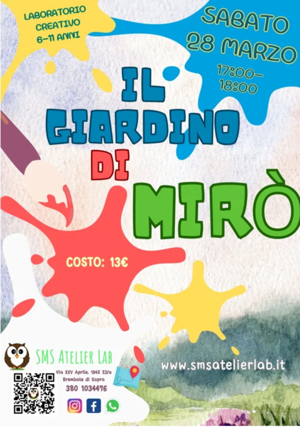 Laboratorio artistico ispirato al pittore surrealista Juan Mirò. Lasciatevi guidare dai suoi quadri dei sogni e dalle figure geometriche o curvilinee tipiche del suo linguaggio pittorico, per creare la vostra personalissima opera! Costo 13 Euro