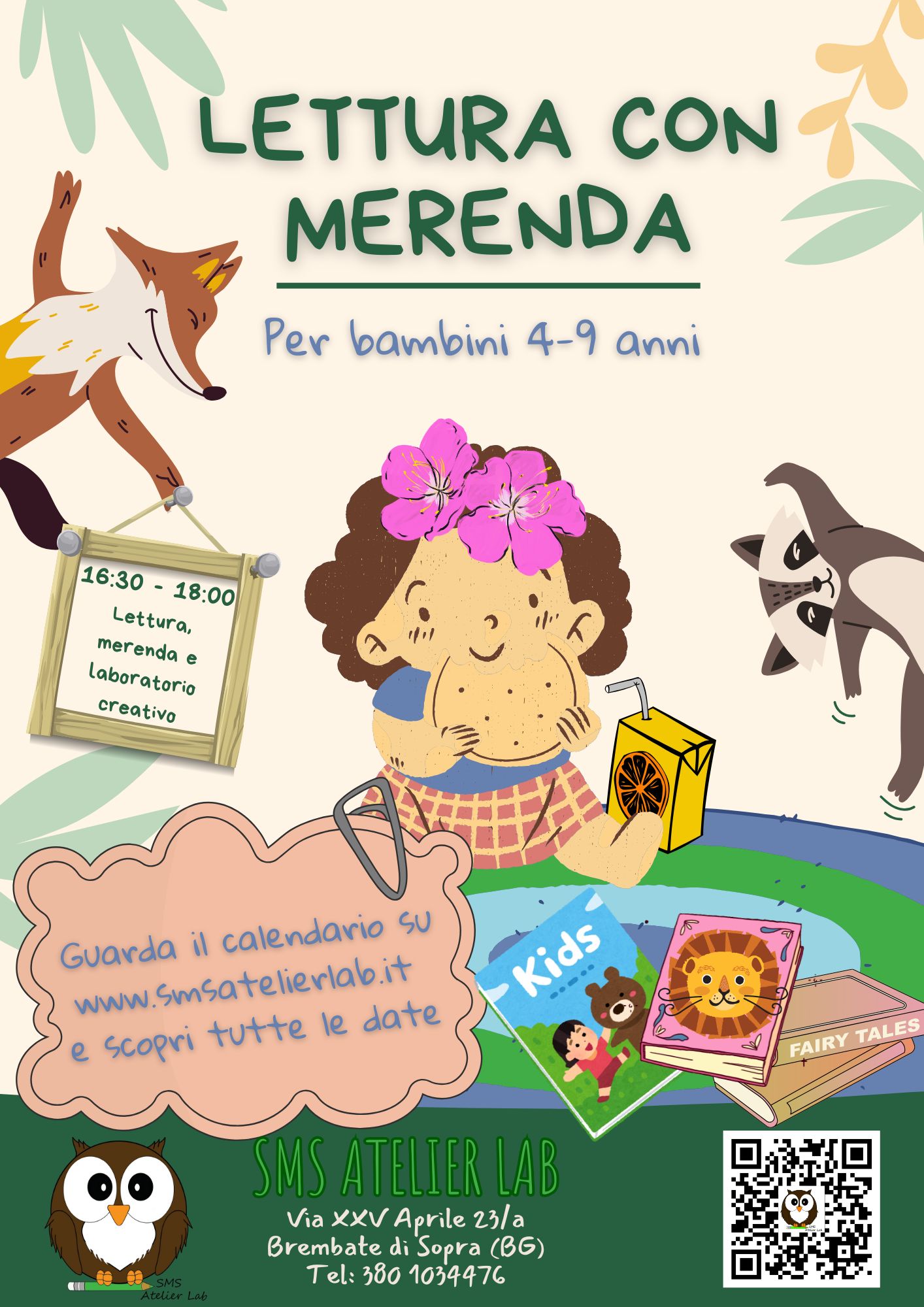 SMS Atelier Lab ogni mese propone degli appuntamenti fissi per i più piccoli! Vieni subito dopo la scuola ad ascoltare una storia durante la merenda, a seguire un simpatico laboratorio creativo. Attività per bambini dai 4 ai 9 anni Costo 18 Euro (merenda inclusa).