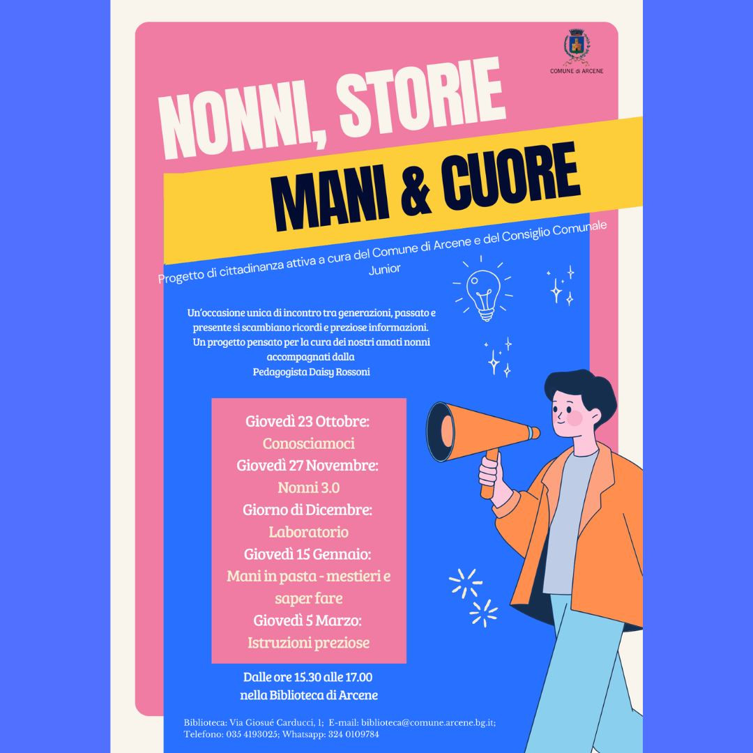 Un progetto di cittadinanza attiva del Comune di Arcene e del Consiglio Comunale Junior. Le prime classi della secondaria parteciperanno a un’iniziativa dedicata ai nonni con la pedagogista Daisy Rossoni. per info e iscrizioni scrivi una mail a biblioteca@comune.arcene.bg.it