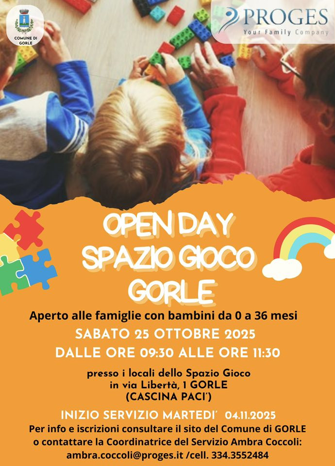 nome Comune di Gorle - coordinatrice servizio Ambra Coccoli tel 334.3552484 email ambra.coccoli@proges.itSegnalaci un evento