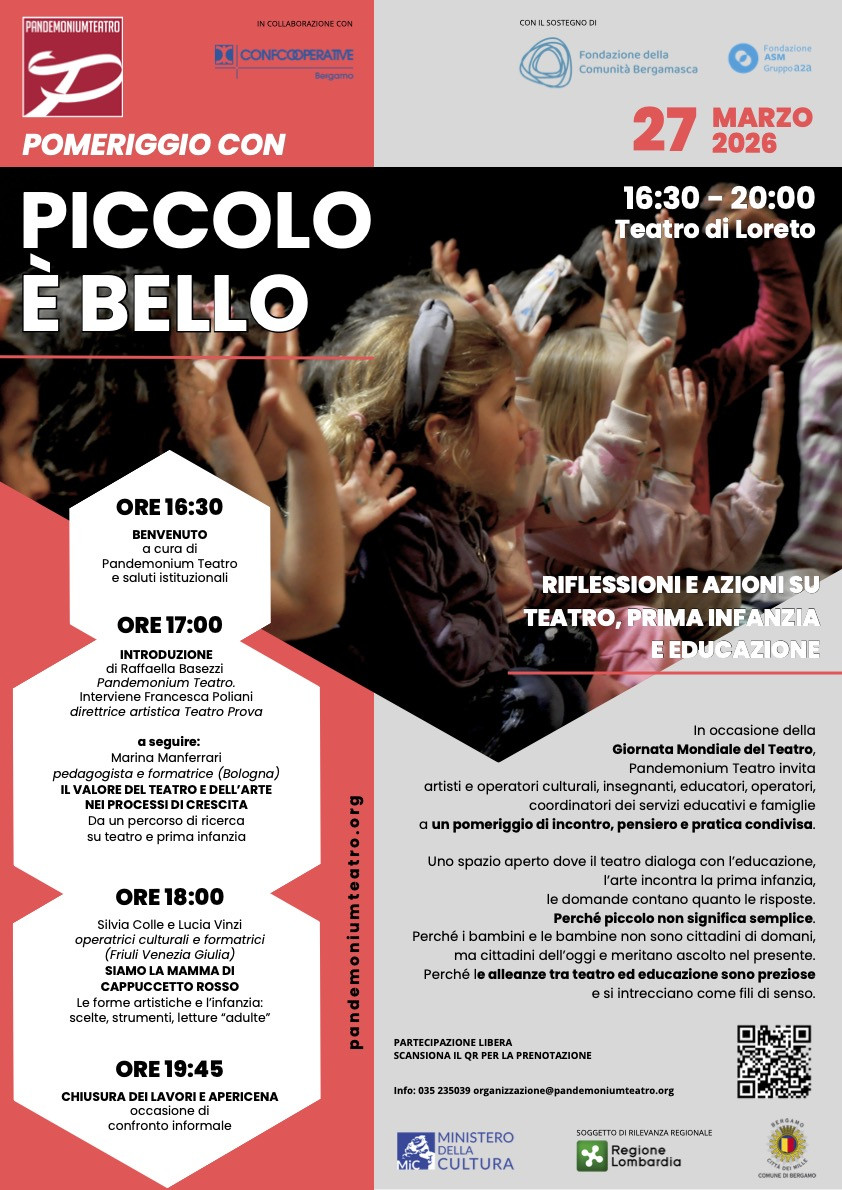 Piccolo è bello sarà uno spazio di incontro, riflessione e pratica condivisa, dove il teatro dialoga con l’educazione. L’iniziativa si inserisce nel progetto Piccolo è bello: Teatro per piccoli cittadini dell’oggi.
