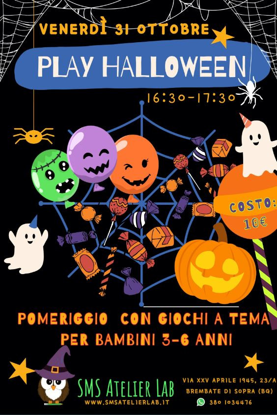 Pomeriggio con giochi a tema! L'atelier aspetta i più piccoli per festeggiare insieme il giorno di Halloween. Evento a pagamento con iscrizione obbligatoria