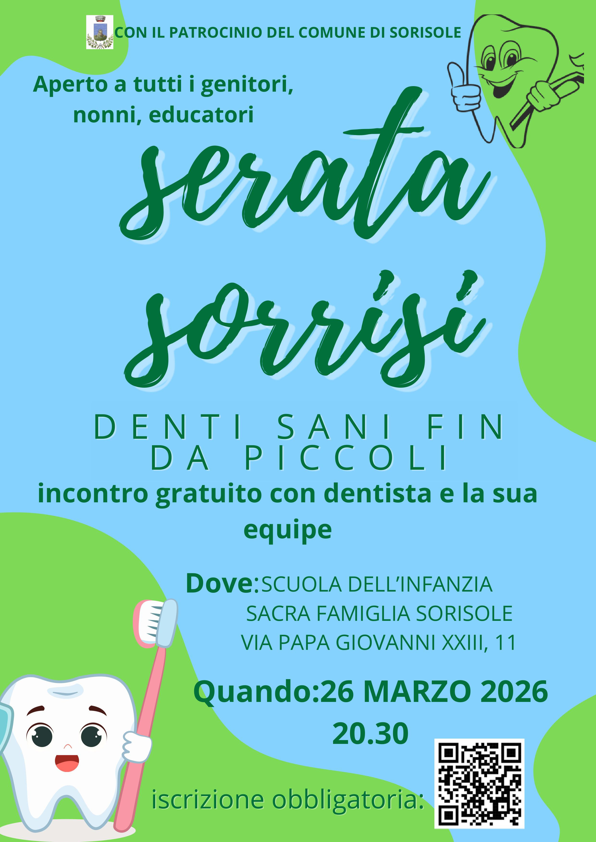 La scuola dell'Infanzia Sacra Famiglia di Sorisole propone un incontro gratuito con dentista ed equipe: SERATA SORRISI Denti sani fin da piccoli