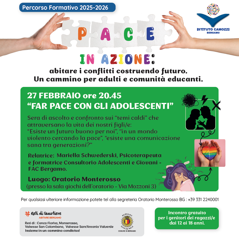 All'interno del percorso formativo PACE IN AZIONE, un tempo da vivere insieme tra racconti e riflessioni, per scoprire nel conflitto un luogo possibile d'incontro e di relazione: So-Stare nel conflitto: dallo scontro all'incontro con l'altro e l'altra