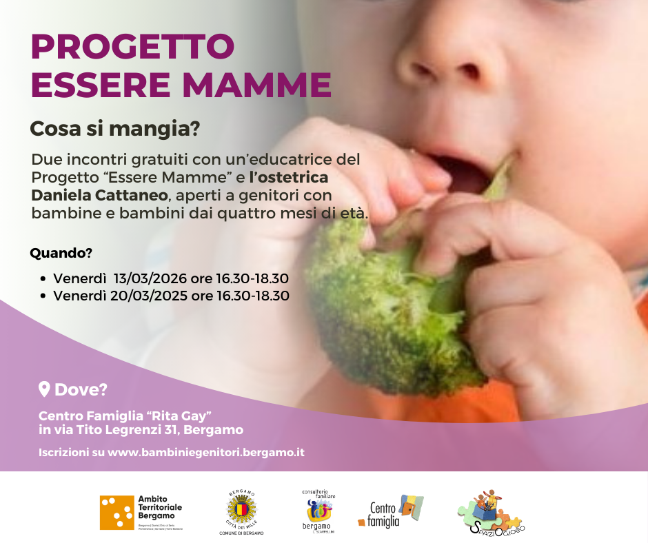 Due incontri gratuiti con l'ostetrica Daniela Cattaneo ed un'educatrice del Progetto "ESSERE MAMME", per genitori con bambine e bambini dai quattro mesi in poi.