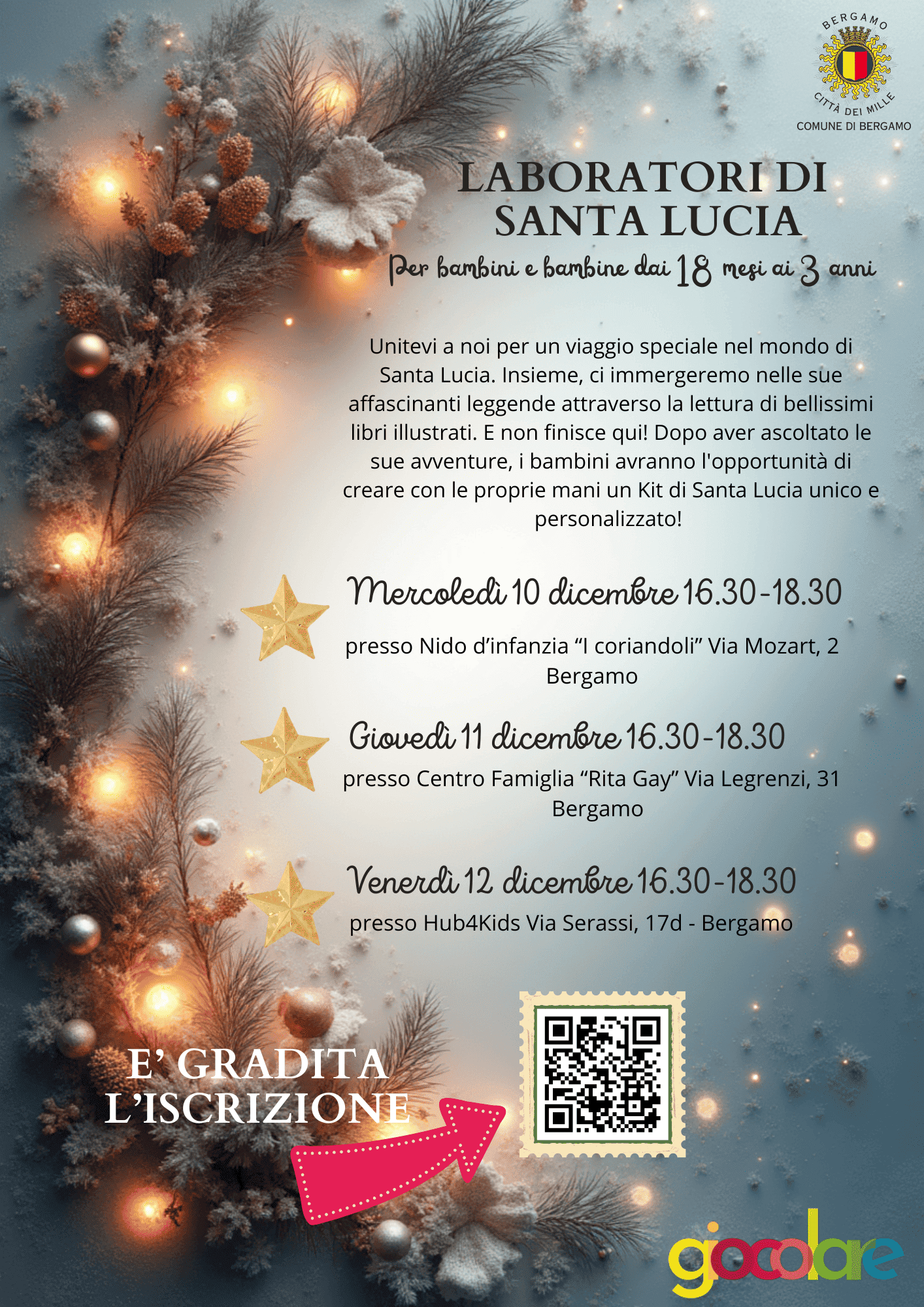 Ecco tre LABORATORI DI SANTA LUCIA per preparare l'arrivo della magia proposti dalla Coop. Giocolare nei servizi all'infanzia del Comune di Bergamo.