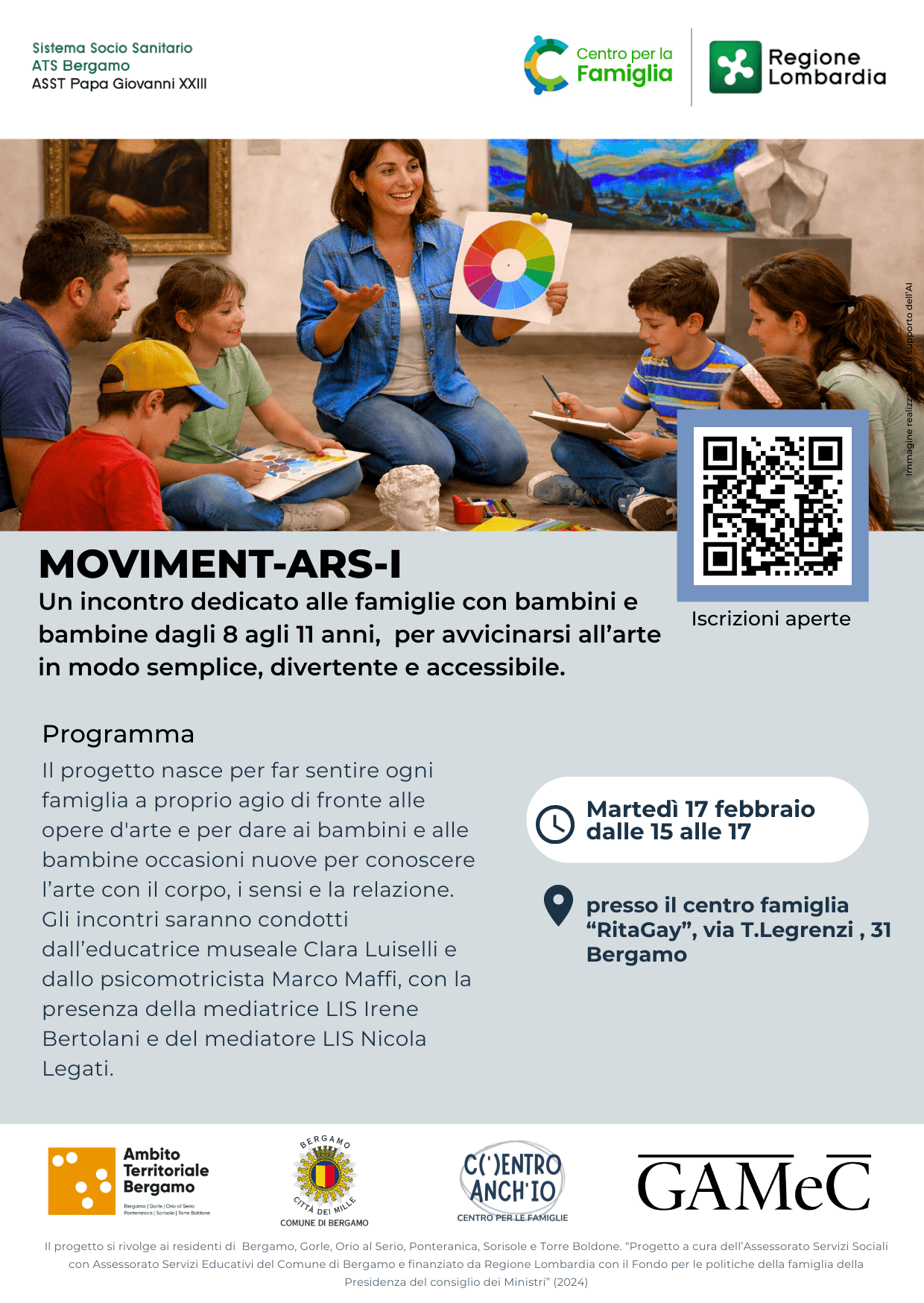 Sala delle Associazioni in via Unione 1 a Ponteranica - Bergamo Proposto da GAMeC Un incontro dedicato alle famiglie con bambine e bambini dagli 8 agli 11 anni per avvicinarsi all'arte in modo semplice, divertente e accessibile. ๐