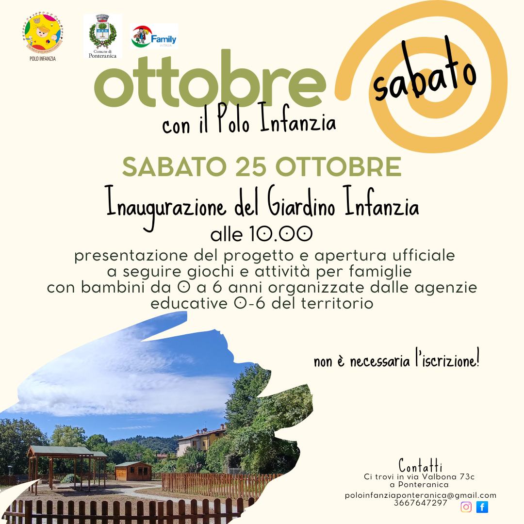 sabato dalle 10.00 alle 12.00, dal 25 ottobre, al Giardino Infanzia,