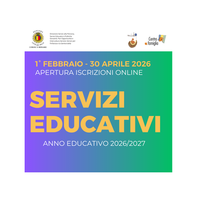 Dal 1 febbraio 2026 e fino al 30 aprile 2026 riaprono le iscrizioni online ai Nidi del Comune di Bergamo per l'anno educativo 2026-27. Ricordiamo che la data di iscrizione NON dà diritto di precedenza sulla graduatoria finale di ammissione. Dal 1 al 31 maggio possono essere iscritti in deroga i bambini e le bambine nati/e nel mese di maggio 2026. E' possibile continuare ad iscrivere i bambini e le bambine fino a dicembre 2026, ma gli iscritti saranno...